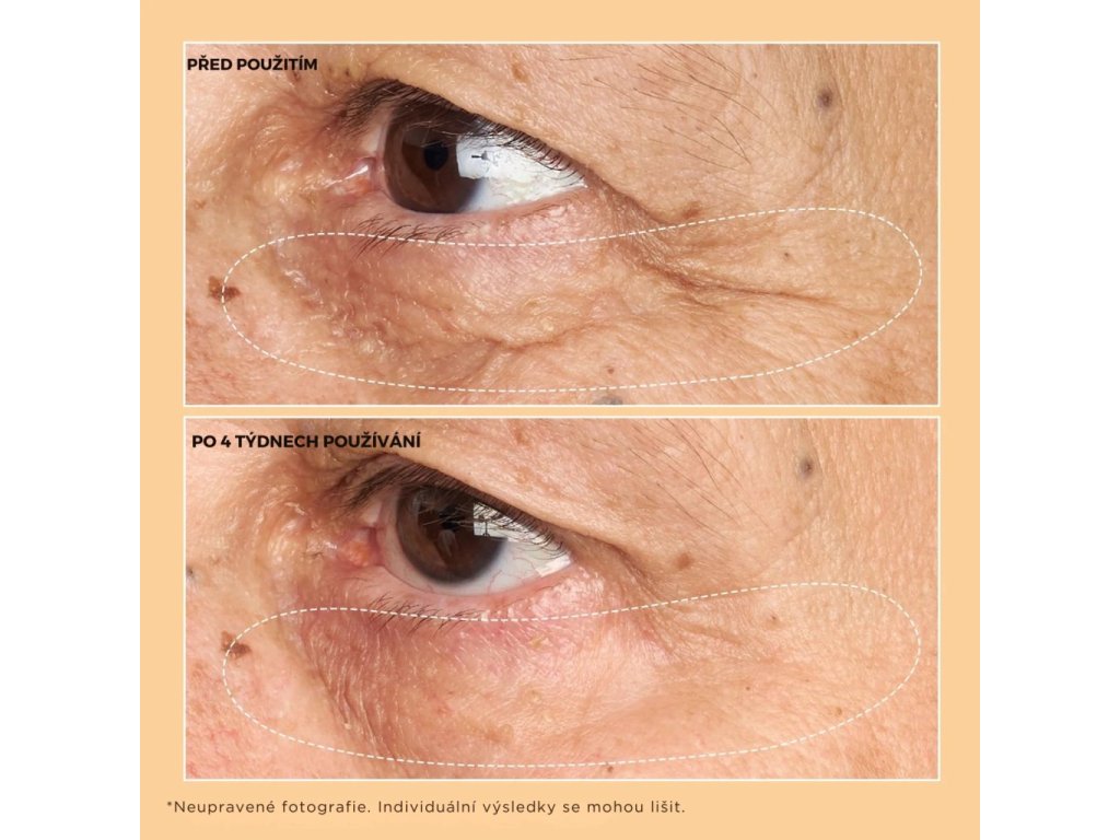 - Vyhlazuje jemné linky, vějířkové vrásky i hlubší rýhy pod očima.